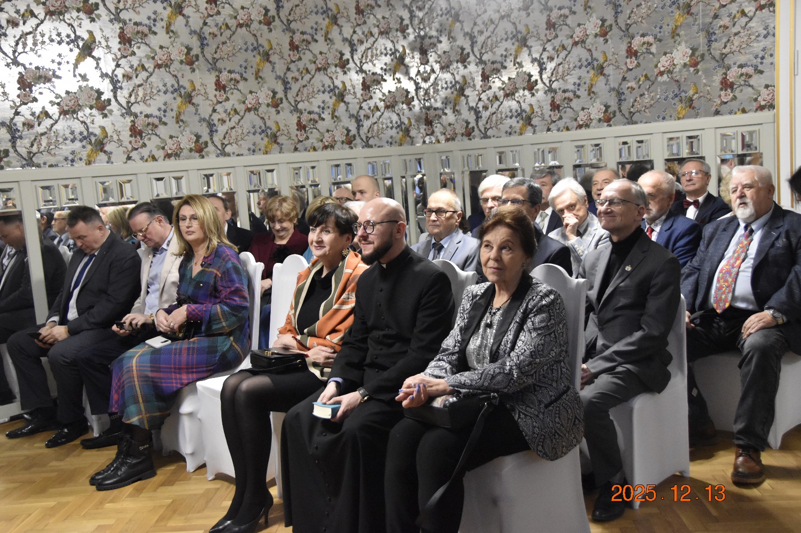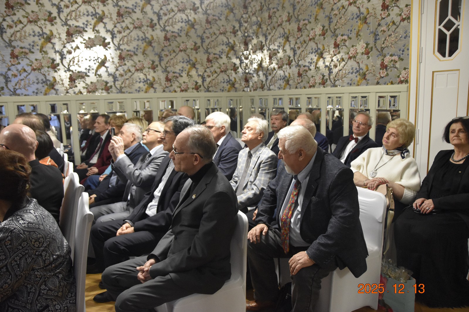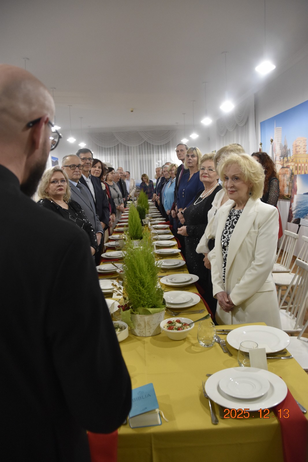Wielkimi krokami nadchodzą przepiękne Święta Bożego Narodzenia i oczekiwana Wigilia, która  łączy wszystkich swoją radosną atmosferą. Nadszedł wyczekiwany czas, w którym tradycyjnie członkowie Zakonu Rycerskiego św. Jerzego wraz z najbliższymi spędzają wspólnie piękne chwile przy wigilijnym stole. To taki dzień, na który wyczekujemy z radością. To czas, w którym dzieląc się opłatkiem składamy sobie życzenia pełni wiary, że się spełnią nawet i te najbardziej skryte. W tym roku kolejny raz spotkanie Wigilijne Dam i Rycerzy Zakonu odbyło się w dniu 13 grudnia w przepięknych wnętrzach zabytkowego pałacyku przy ul. Gdańskiej 107 w Łodzi. Przywitanie przybyłych gości przez gospodarza świątecznej uroczystości Wielkiego Priora Pawła Michalaka od samego początku wprowadziło wszystkich uczestniczących w opłatkowym spotkaniu  w radosny nastrój. Już od wejścia dźwięki kolęd, rozchodzących się po wnętrzu oraz magiczna choinka lśniąca blaskiem lampek, otulały nas magią świąt. Kolejny rok wspólnie z nami ten piękny czas spędzili zaprzyjaźnieni z Zakonem artyści, którzy i w tym roku uświetnili to nasze opłatkowe spotkanie przepięknym koncertem. Wysłuchaliśmy kolęd w wykonaniu śpiewaczek operowych: Barbary Panek Piętkowskiej, Danuty Dudzińskiej, Emilii Klimczak i Doroty Wójcik przy dźwiękach fortepianu za którym zasiadła Ewa Szpakowska oraz skrzypiec na których grał Mikołaj Janas. Koncert, w cudowny sposób recytując okolicznościowe wiersze poprowadzili Julita Sękiewicz Kisiel oraz Kawaler Zakonu Krzysztof Stępniewicz. To była prawdziwa uczta duchowa dla uczestników tego pięknego koncertu. W imieniu Dam i Kawalerów Zakonu, Kanclerz Małgorzata Stępniewicz złożyła artystom świąteczne życzenia i obdarowała ręcznie wykonanymi przez dzieci choinkami. W świątecznych nastrojach  goście spędzili czas przy suto zastawionym wigilijnym stole. Wzruszające życzenia złożone przez Wielkiego Priora oraz ks.  Damiana Czerwińskiego oraz po wzajemnym złożeniu sobie życzeń, łamiąc się opłatkiem uczestnicy wigilijnego spotkania  rozpoczęli wspólne biesiadowanie. Świąteczna atmosfera sprzyjała naszym wzajemnym rozmowom, a wspólnie spędzony czas wprowadził nas w nadchodzące Święta Bożego Narodzenia. Do zobaczenia przy wigilijnym stole w przyszłym 2026 roku.